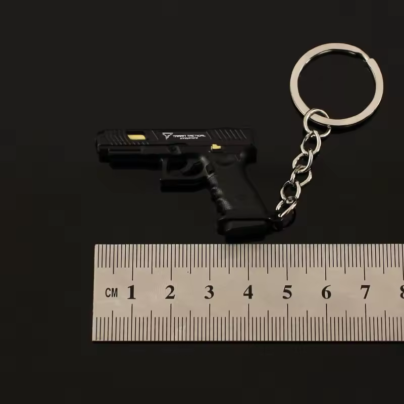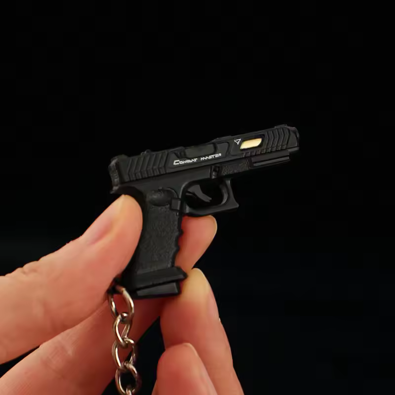 Stylová mini klíčenka ve tvaru černé pistole o délce 5 cm je ideálním doplňkem pro milovníky zbraní, airsoftu a military stylu. Kompaktní přívěsek nabízí realistický tvar pistole v elegantním tmavém provedení a perfektně se hodí na svazek klíčů, batoh nebo výstroj.